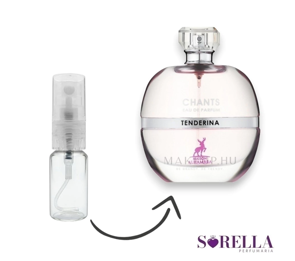 Chants Tenderina de Maison Alhambra é um perfume Floral Frutado Feminino. Chants Tenderina foi lançada em 2022. As notas de topo são: Bergamota, Flor de Toranja e Pêssego. As notas de coração são: Jasmim, Rosa e Íris. As notas de fundo são: Almíscar Branco, Vetiver, Baunilha e Patchouli.
