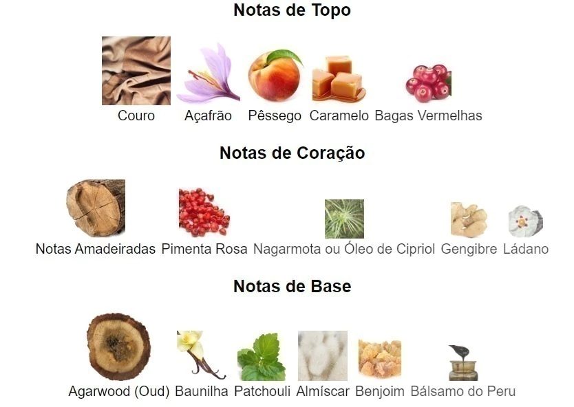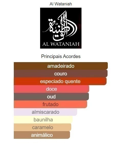 Special Oud de Al Wataniah é um perfume Compartilhável. As notas de topo são: Couro, Açafrão, Pêssego, Caramelo e Bagas Vermelhas. As notas de coração são: Notas Amadeiradas, Pimenta Rosa, Nagarmota ou Óleo de Cipriol, Gengibre e Ládano. As notas de fundo são: Agarwood (Oud), Baunilha, Patchouli, Almíscar, Benjoim e Bálsamo do Peru.